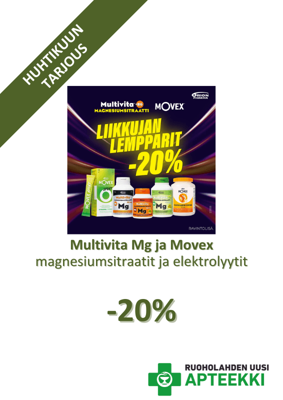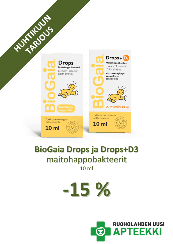 Apteekista löydät kaiken tarvitsemasi terveyteen ja hyvään oloon. Itsehoito- ja reseptilääkkeiden lisäksi valikoimassa on runsaasti mm. erilaisia terveyteen ja hyvinvointiin liittyviä tuotteita. Osaava ja lämmöllä palveleva henkilökunta auttaa sinua mielellään kaikissa kysymyksissä. Tule siis tutustumaan upouusiin tiloihin ja nappaa samalla itsellesi energiaa ja hyvinvointia syksyn pimeneviin iltoihin.